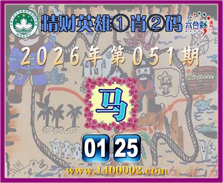 051期:【精财英雄】 🥖①肖②码🥖【】【01.25】开:马01